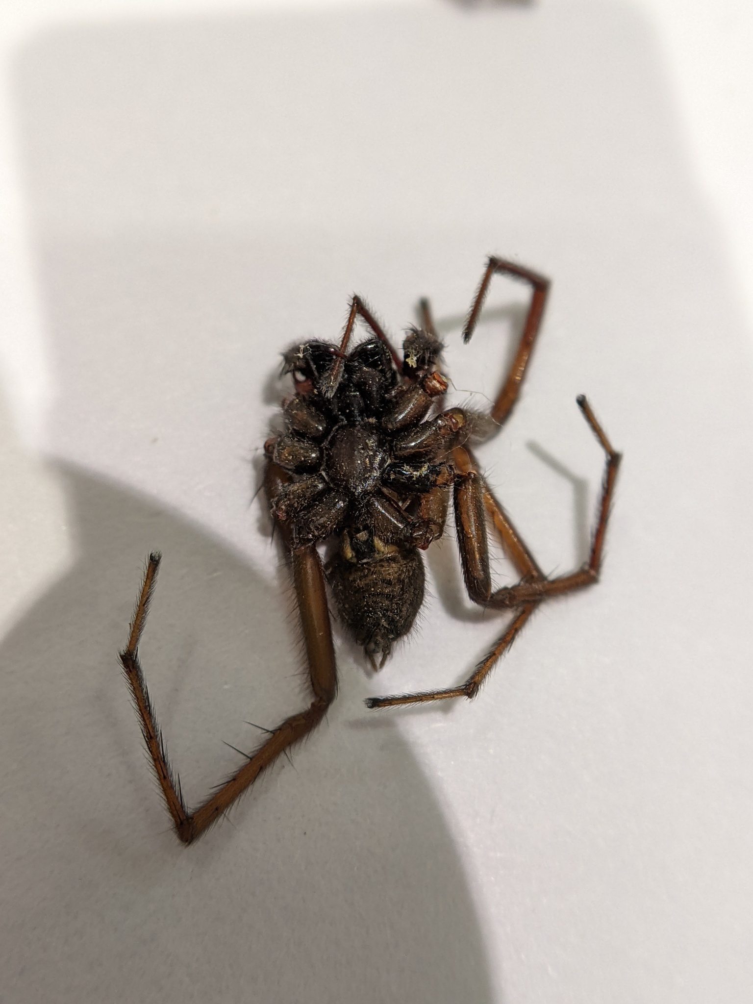 物種草蛛科 Agelenidae (未鑑定)[原始紀錄物種] 草蛛科 Agelenidae鑑定未鑑定敏感層級座標不開放日期2025-11-25地點記錄者SF 型態 性別 標本未採集標本 描述 12mm。雄蛛。隙蛛屬嗎?發現時吊在角落,身體軟軟的,腹部扁扁的,腳一碰就掉了! 註記 授權照片授權: CC BY (SF)識別號07d59162-4149-428a-830c-024ed800d6e0 (OccurrenceUUID)2009740 (nid)