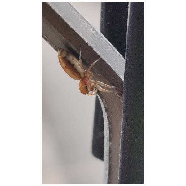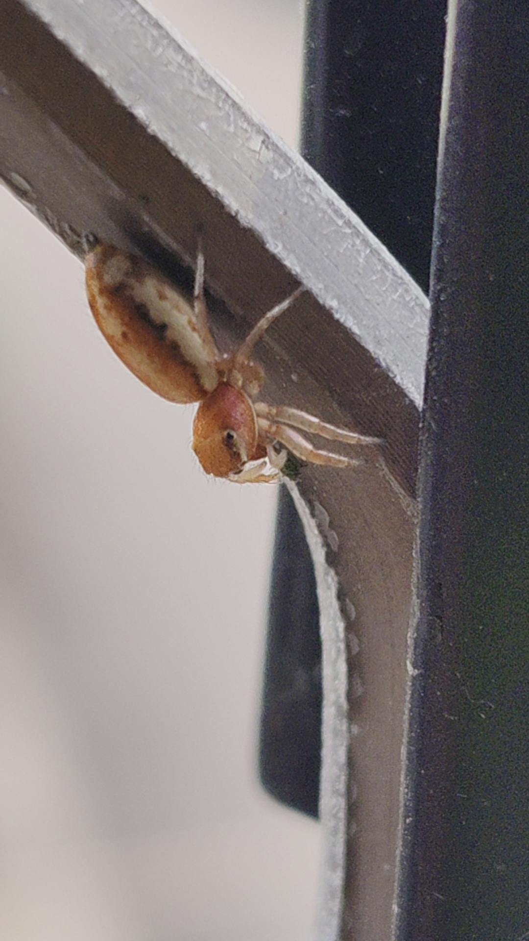陽臺上有種龍葵,上面有蚜蟲,發現牠把蚜蟲帶到一旁窗格上再進食