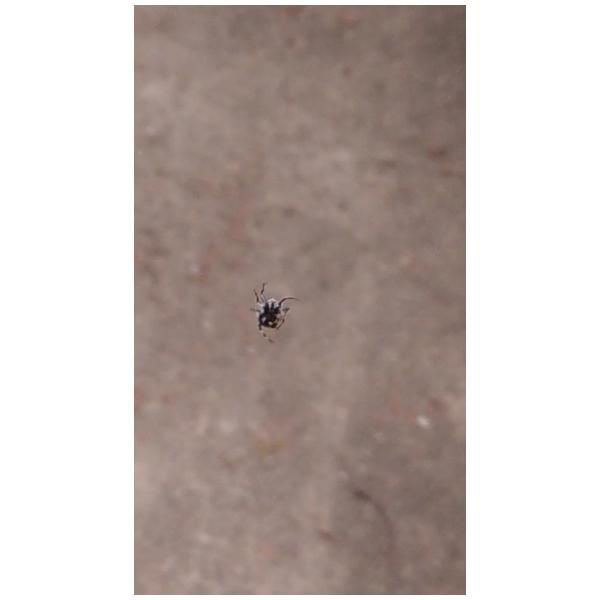 底部腹部尾端有兩個黃色斑點 整隻黑白配色